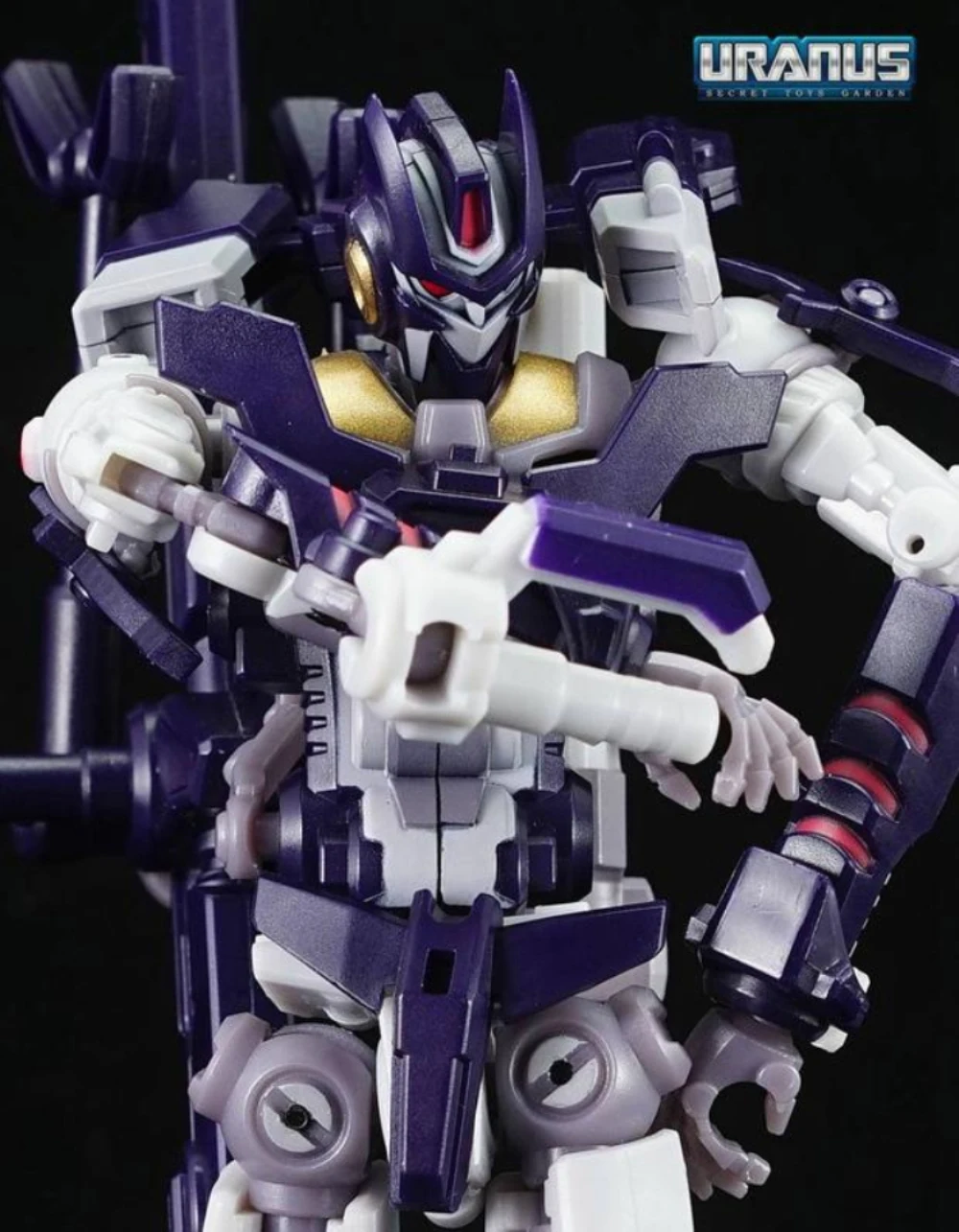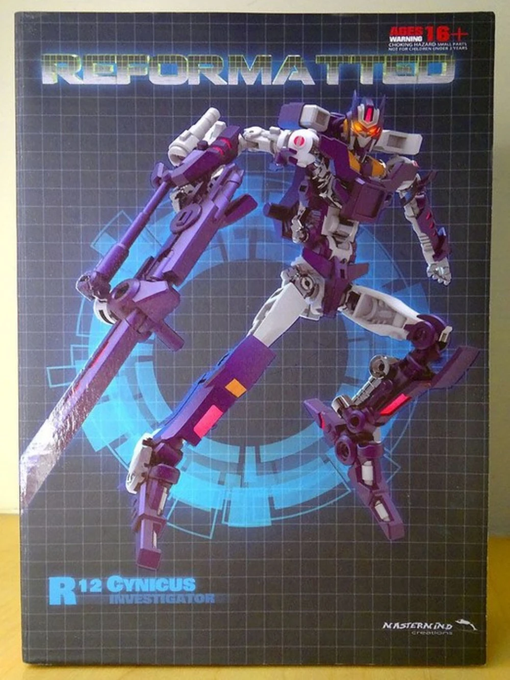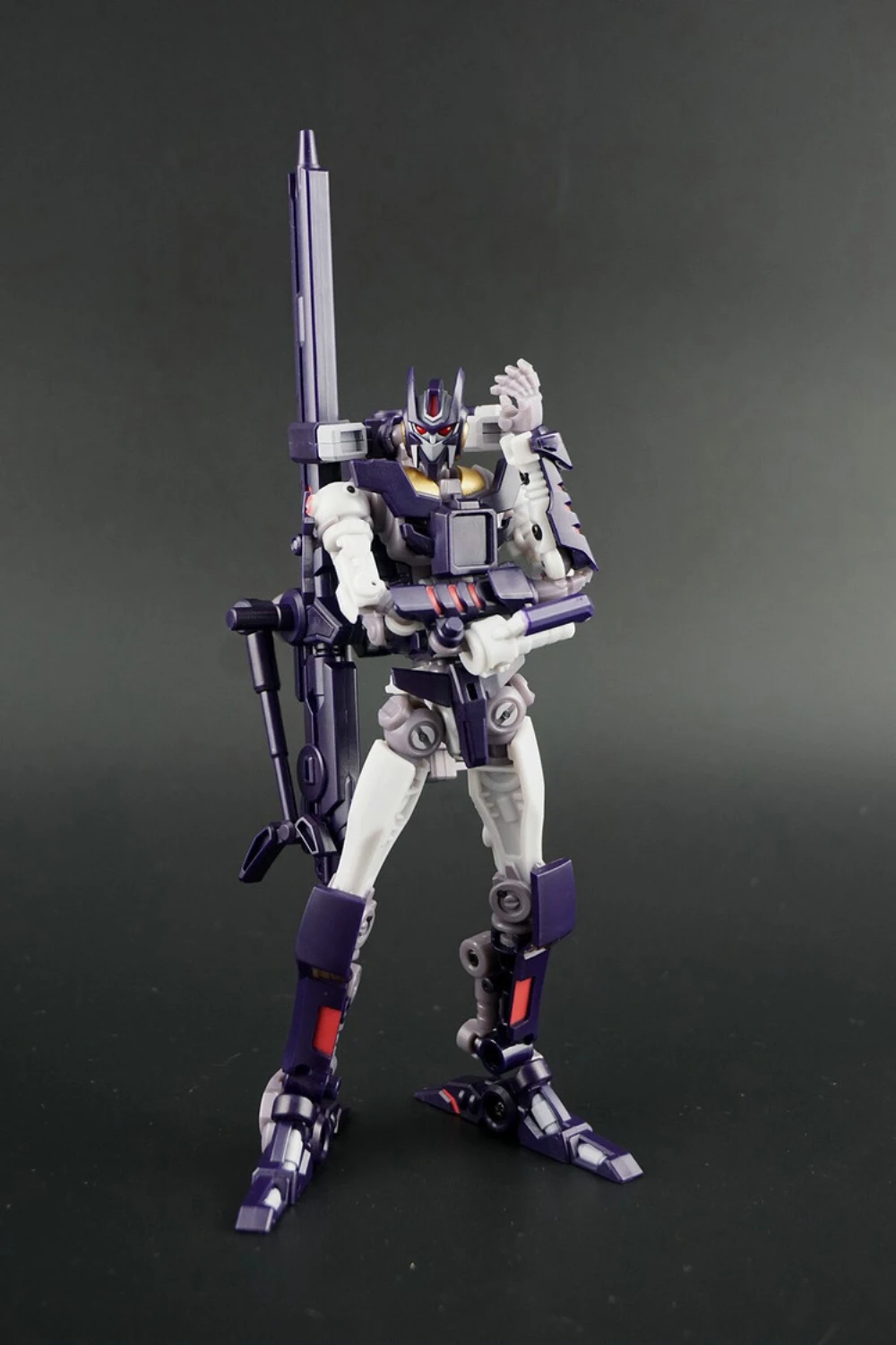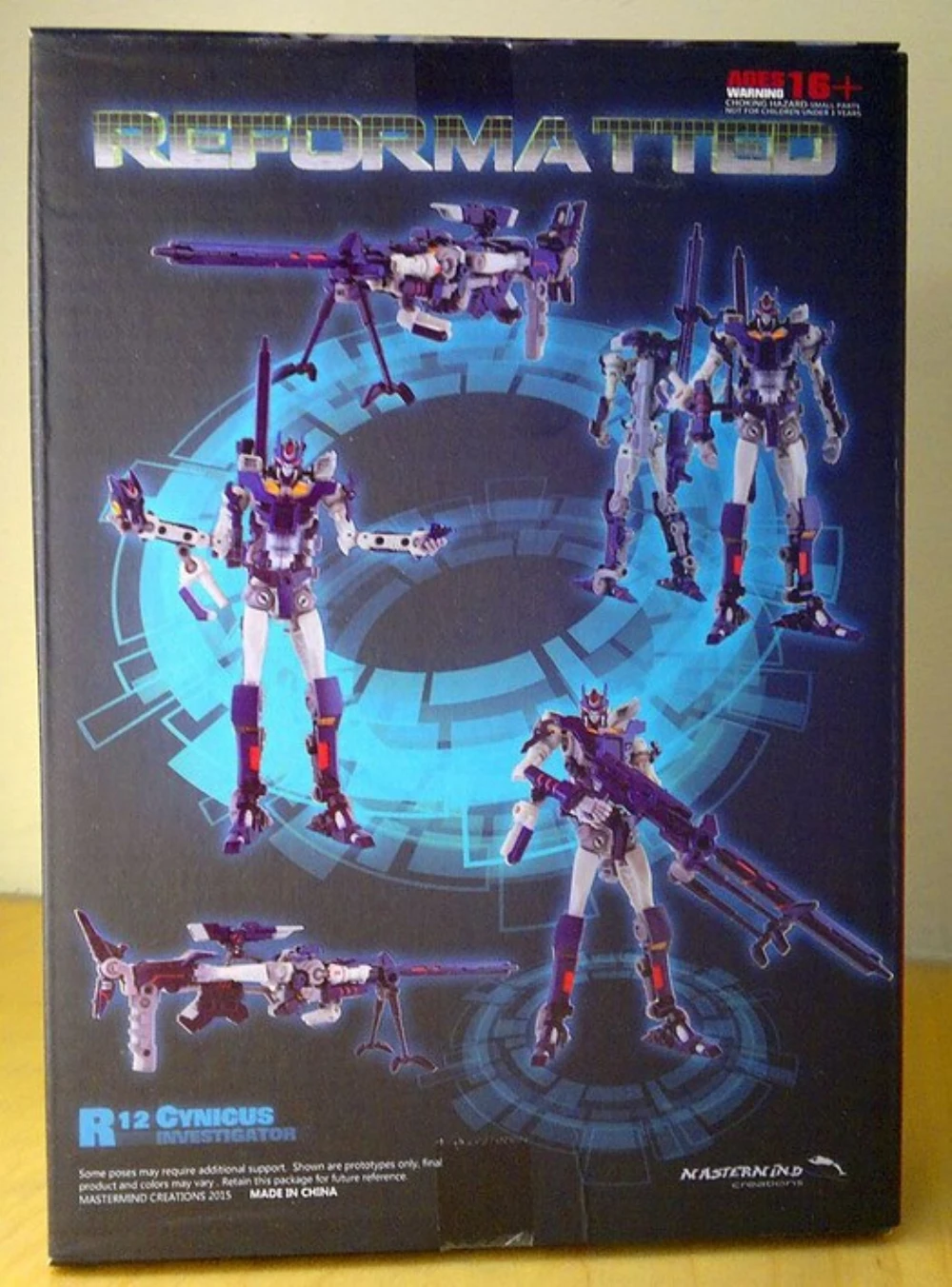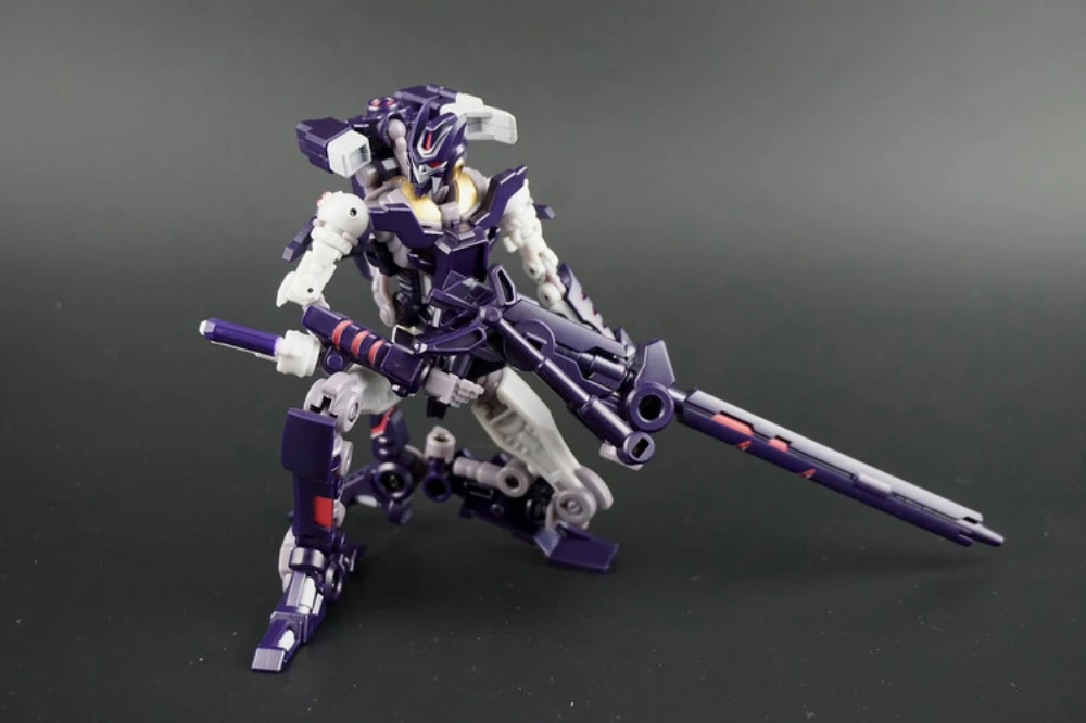 Cynicus transforms from robot to sniper rifle. In rifle mode he is a perfect fit for the Mastermind Creations’ Feral Rex figure. This figure also comes with a faceless spare head.