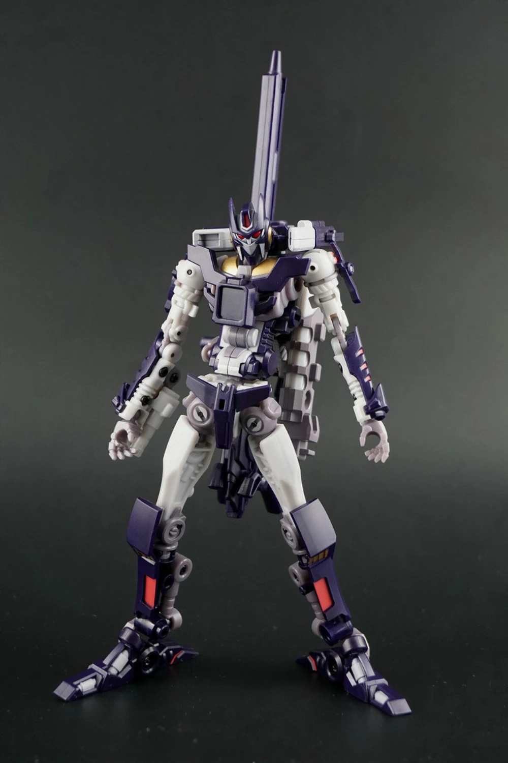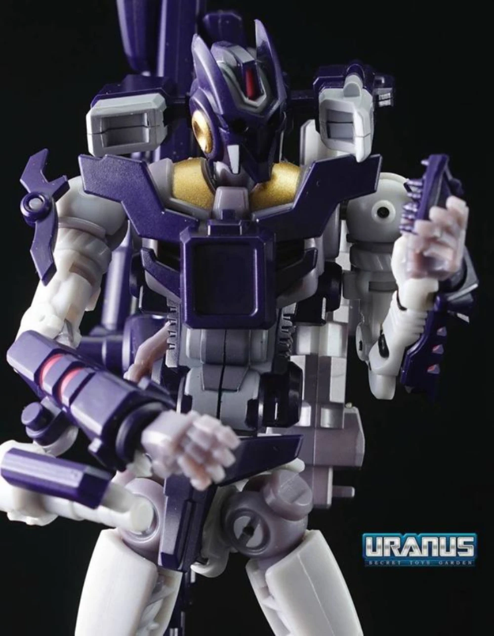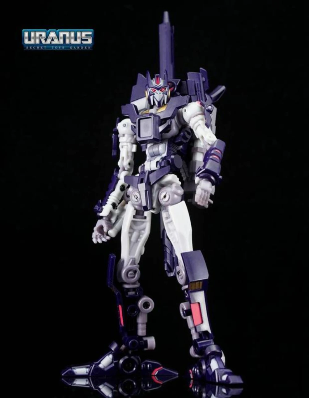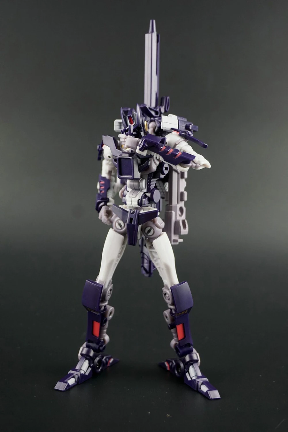 Cynicus transforms from robot to sniper rifle. In rifle mode he is a perfect fit for the Mastermind Creations’ Feral Rex figure. This figure also comes with a faceless spare head.