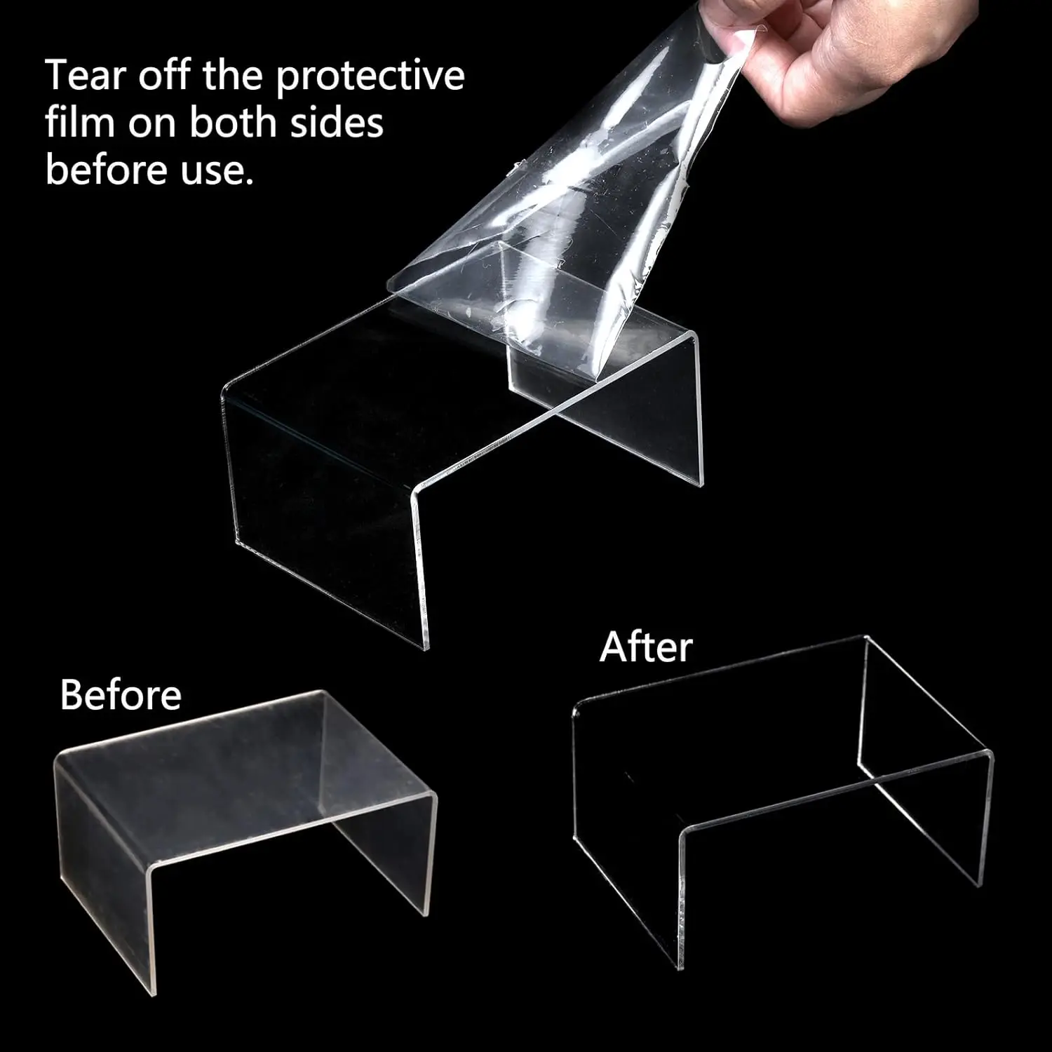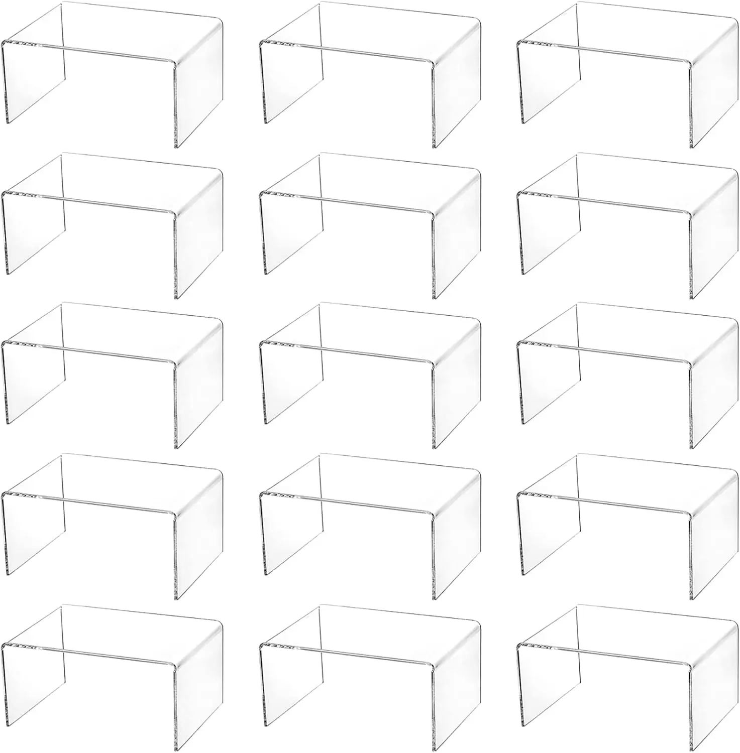 Enhance your display with these versatile clear acrylic risers! Perfect for showcasing a variety of items in an organized and elegant way. Key Features: – Package Includes: Receive 16 transparent U-shaped acrylic display racks in one set, providing ample quantity for multiple uses or larger displays. – Material Quality: Made from durable acrylic material that is transparent and sturdy, ensuring a neat appearance while offering reliable support for your exhibition pieces without yellowing over time. – Dimensions: Each riser measures 4.4 inches by 3.2 inches by 2.2 inches (approximately), ideal for holding items up to 3 inches in height, making them suitable for small to medium-sized objects. – Versatile Applications: Use these stands in various settings such as home decor buffets, party setups for desserts like cupcakes and candy, jewelry displays to highlight accessories, or for collectibles and figures to create eye-catching arrangements that stand out. – Easy Setup and Maintenance: The risers come with protective films on both sides to prevent scratches during shipping; simply peel off the films before use to reveal a bright, clear surface. If they appear cloudy initially, removing the film will restore their transparency. Benefits: These display risers help organize your space efficiently while adding a professional touch to any setup. Their transparent design allows the focus to remain on your displayed items without distracting backgrounds. Durable construction ensures long-lasting use in different environments from home to events. Usage Tips: For best results, place the risers on flat surfaces and arrange items evenly. They are lightweight yet stable enough to hold various objects securely. Clean with a soft cloth if needed; avoid harsh chemicals that might damage the acrylic material.