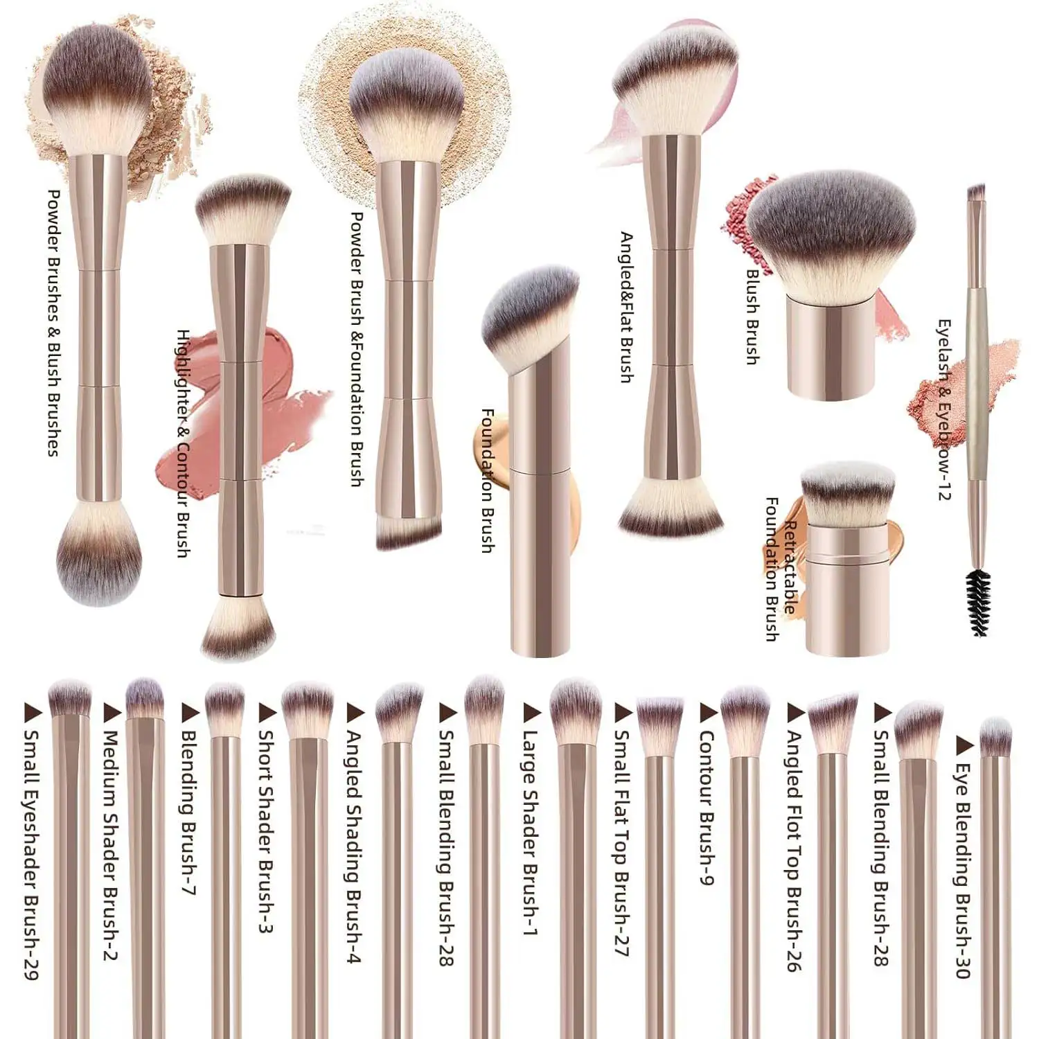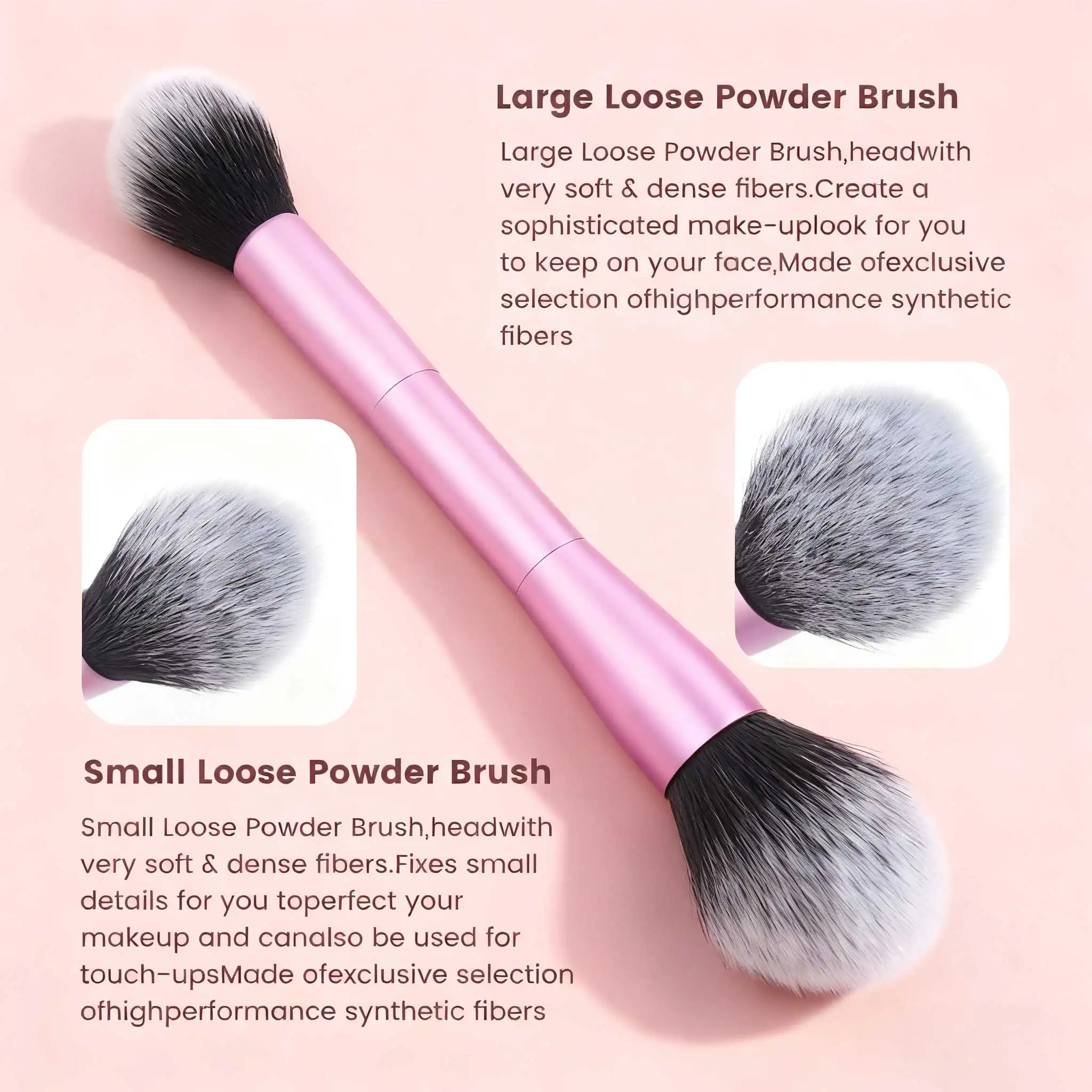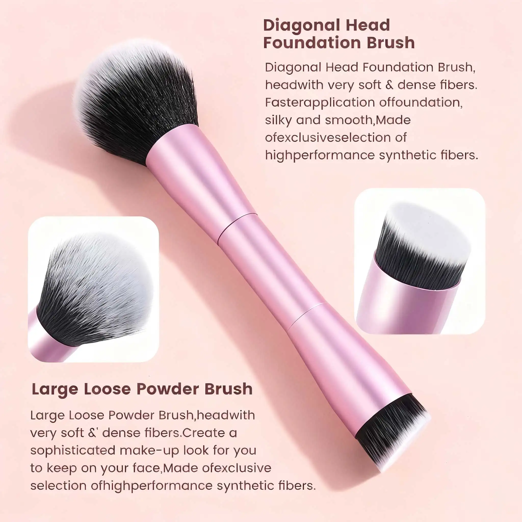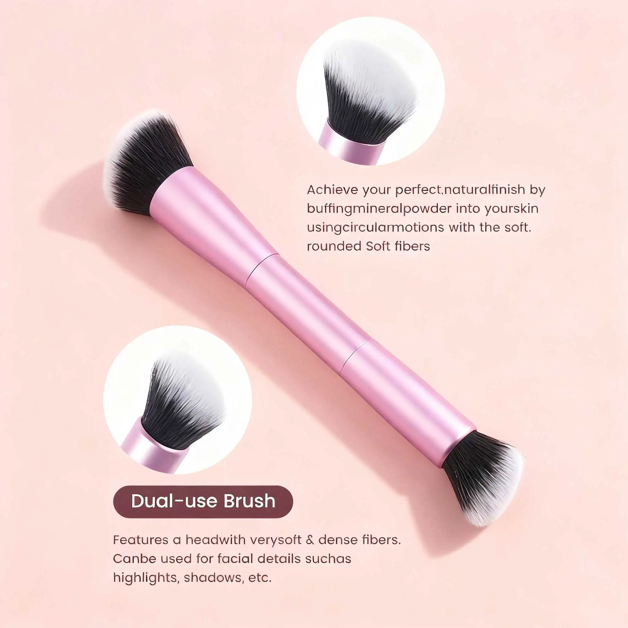 Double-ended design allows for versatile use, perfect for foundation, concealer, blush, and eye shadow.
