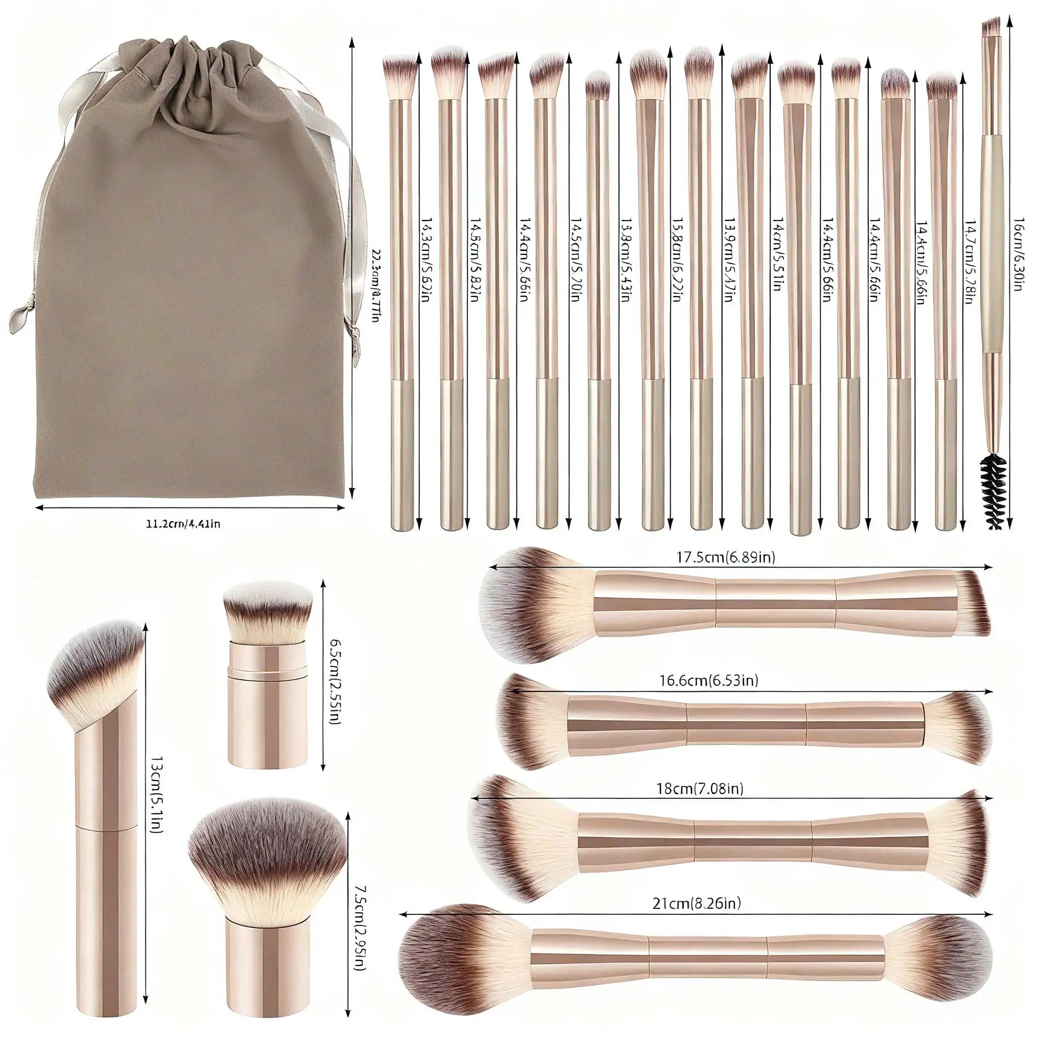 This comprehensive set includes 20 brushes, providing a complete makeup toolkit for professionals and enthusiasts alike.