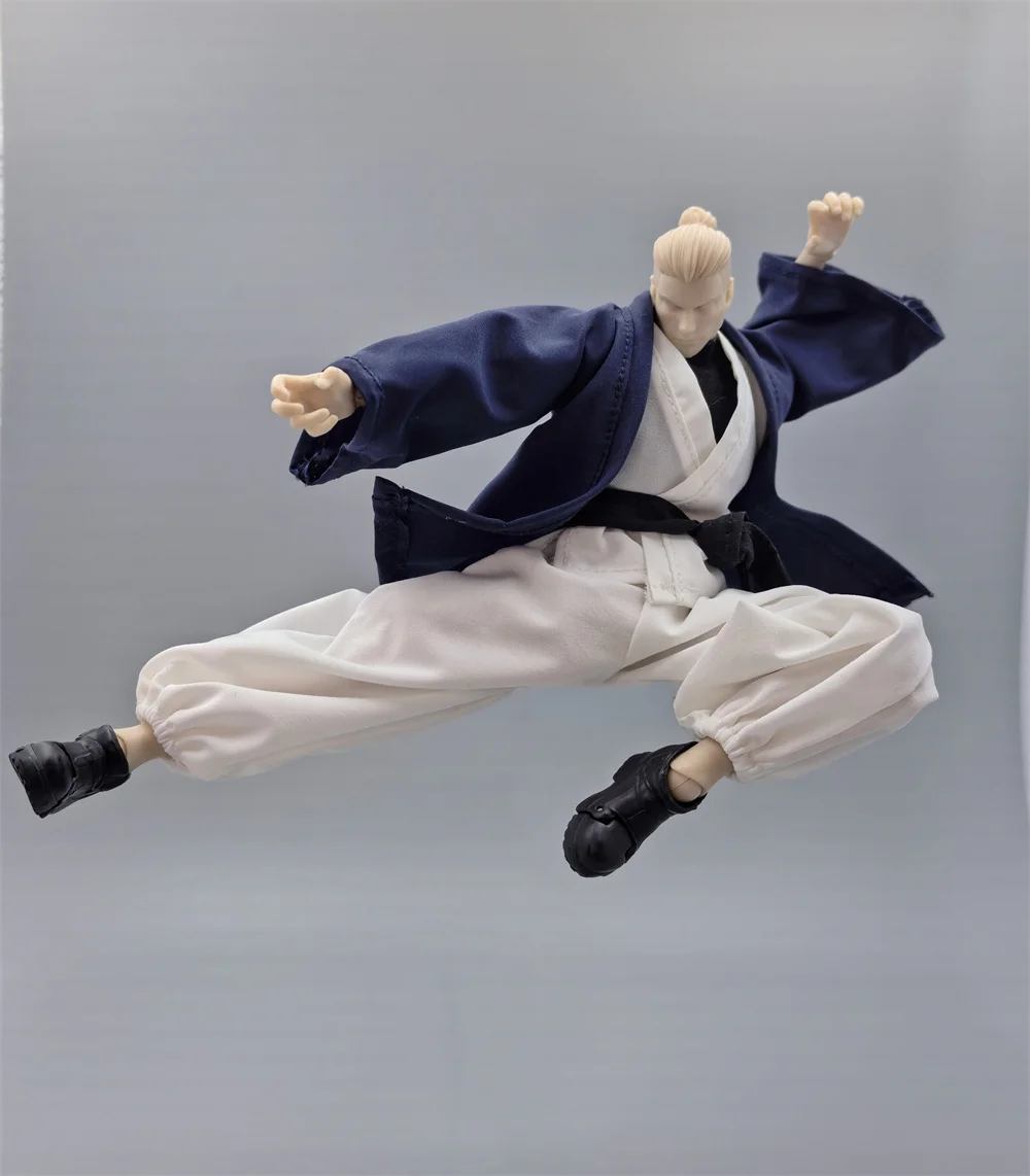 Handmade 1/12 Scale Loose Blue Jacket White Sleeveless Vest Pants Set Clothing Accessories for SHF Romankey Action Figure Body