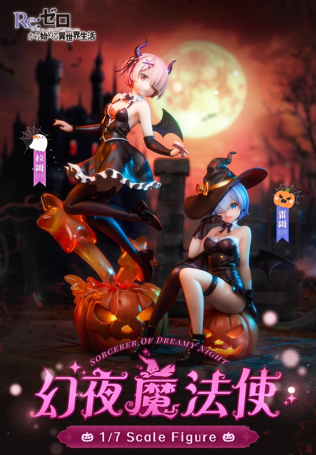 In Stock Re:Zero Starting Life in Another World Ram & Rem Magic Night Magic 1/7 Figure Scenery Action Figure Collection Gift