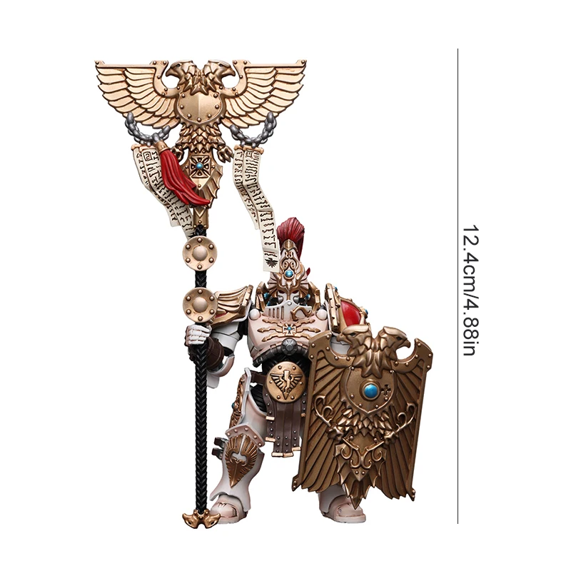 The JoyToy Warhammer 40K Adeptus Custodes Solar Watch Vexilus Praetor is a meticulously crafted collectible action figure that immerses you in the rich Warhammer 40,000 universe. This figure showcases the formidable Adeptus Custodes, known for their golden armor and elite status in the Imperium of Man. With remarkable attention to detail and high-quality craftsmanship, this action figure is a must-have for Warhammer 40K enthusiasts and collectors. It allows fans to bring the honor and might of the Adeptus Custodes into their collection or reenact epic battles within the grim future of the 41st millennium.