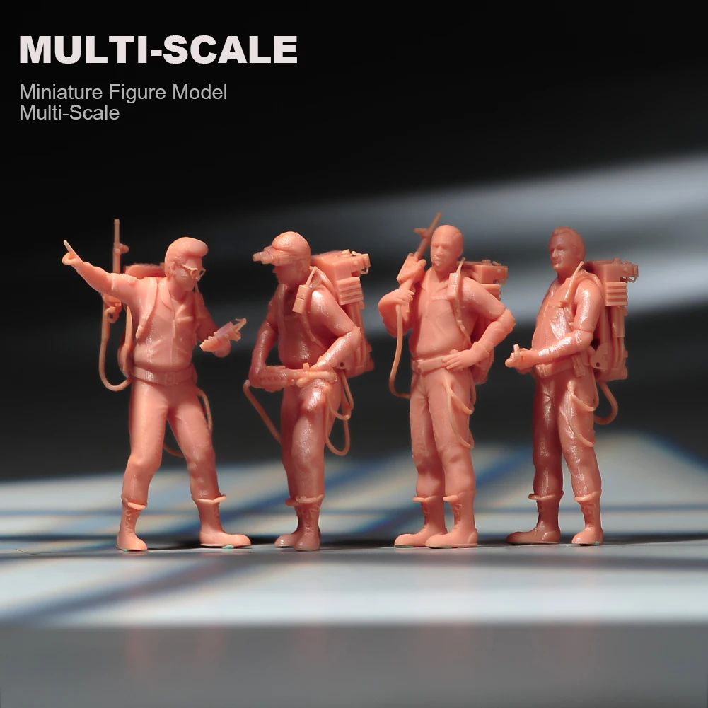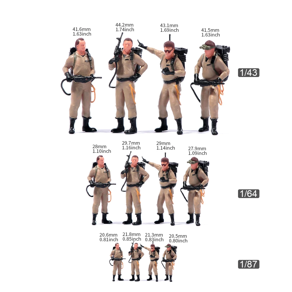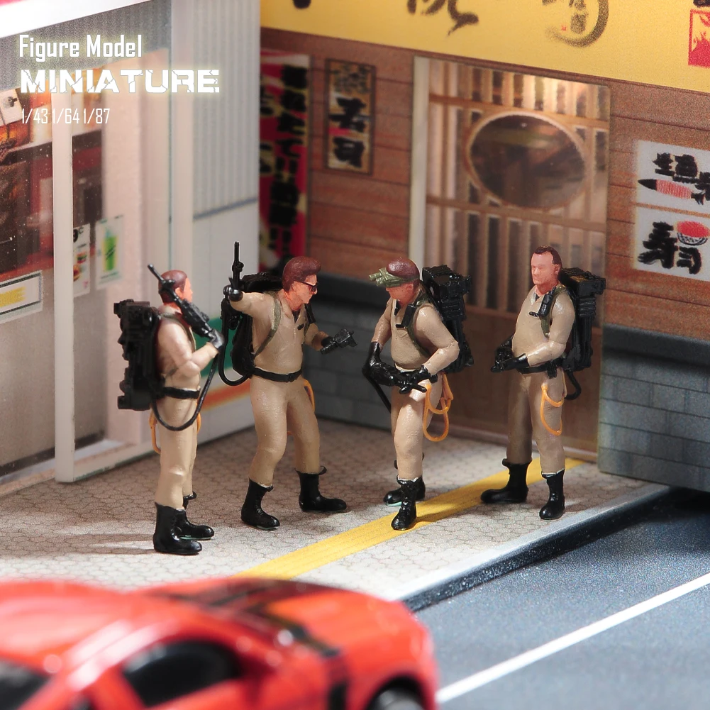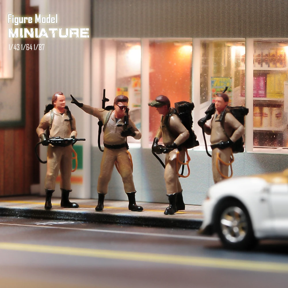 Miniatures Figures 1/87 1/64 1/43 1/24 4pcs Ghost Hunting Teams Figures Model Creative Photography Scene Props For Cars Toys – VaultFigure