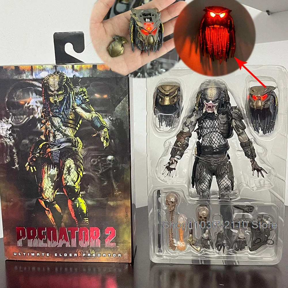 NECA Elder Predator Figure With LED Predator VS Alien Edition Predator Alien Hunter Action Figure Model Collectible Gifts