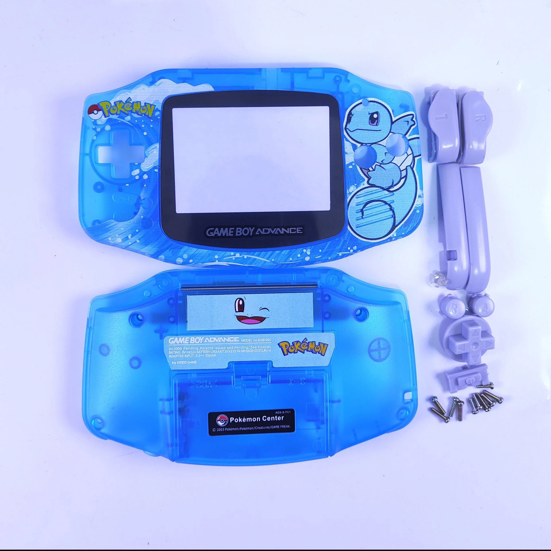 Shell Kit Contents: Buttons, Stickers, Screws, and Screen Lens