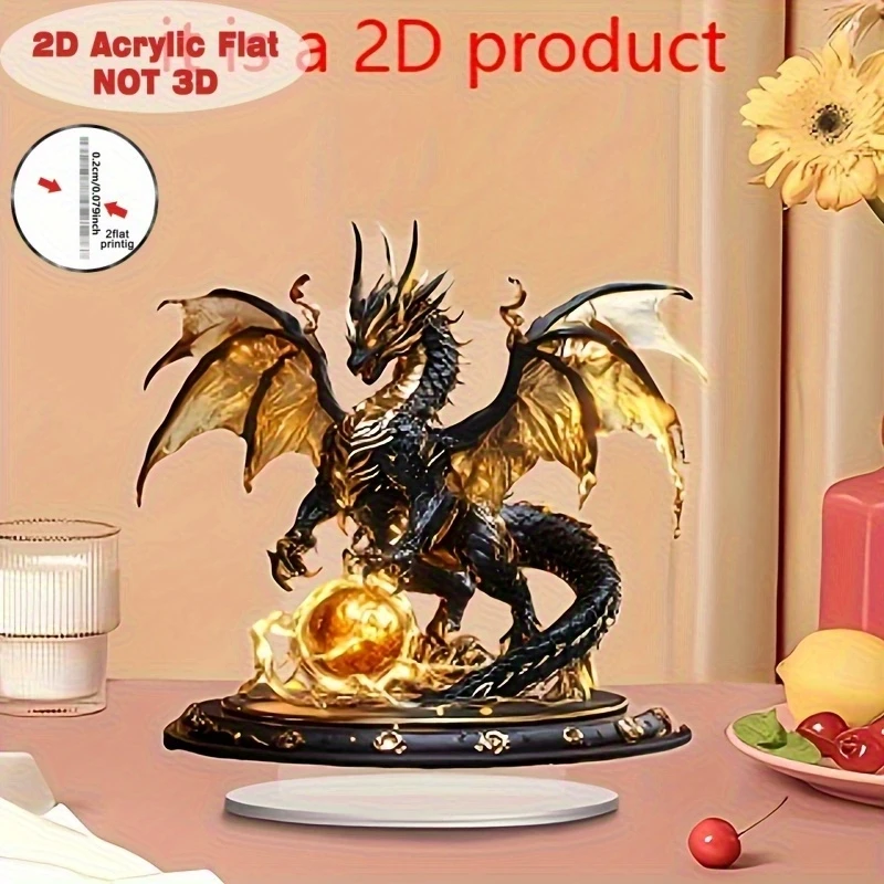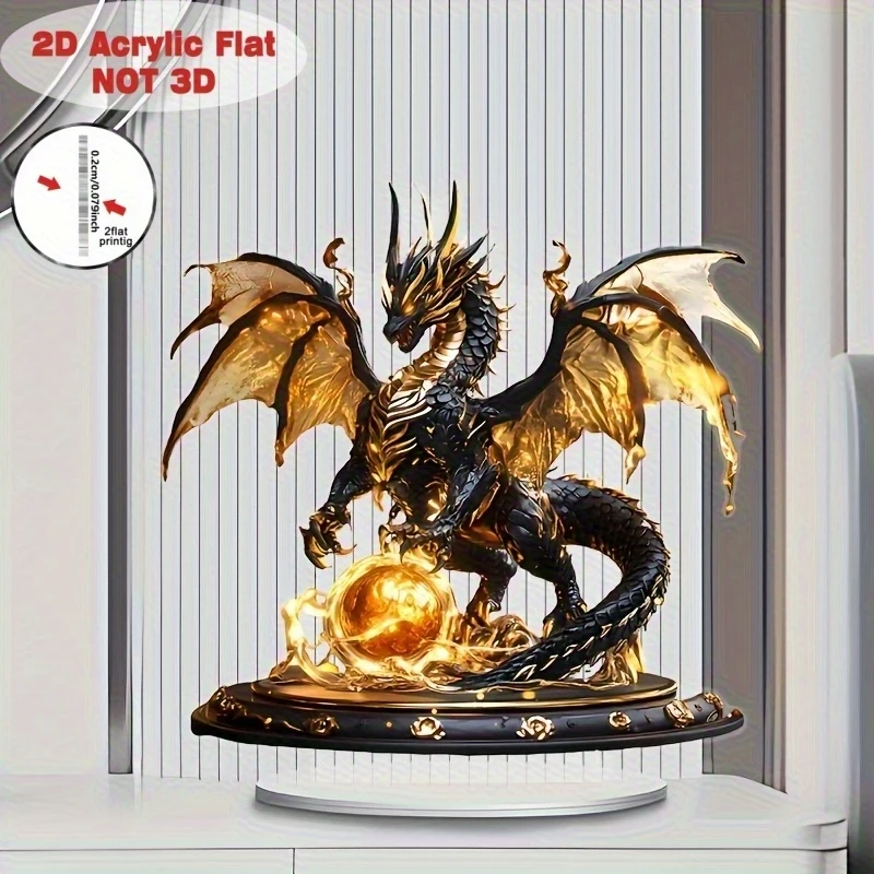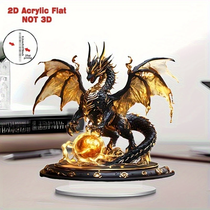 Retro Black Gold Fantasy Flame Dragon Acrylic Figurine Flat Home Desk Decoration Dragon Pattern Birthday Gift – VaultFigure