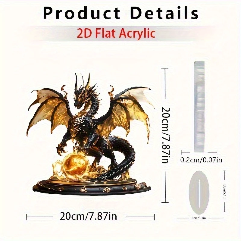 Be the first to review “Retro Black Gold Fantasy Flame Dragon Acrylic Figurine Flat Home Desk Decoration Dragon Pattern Birthday Gift”