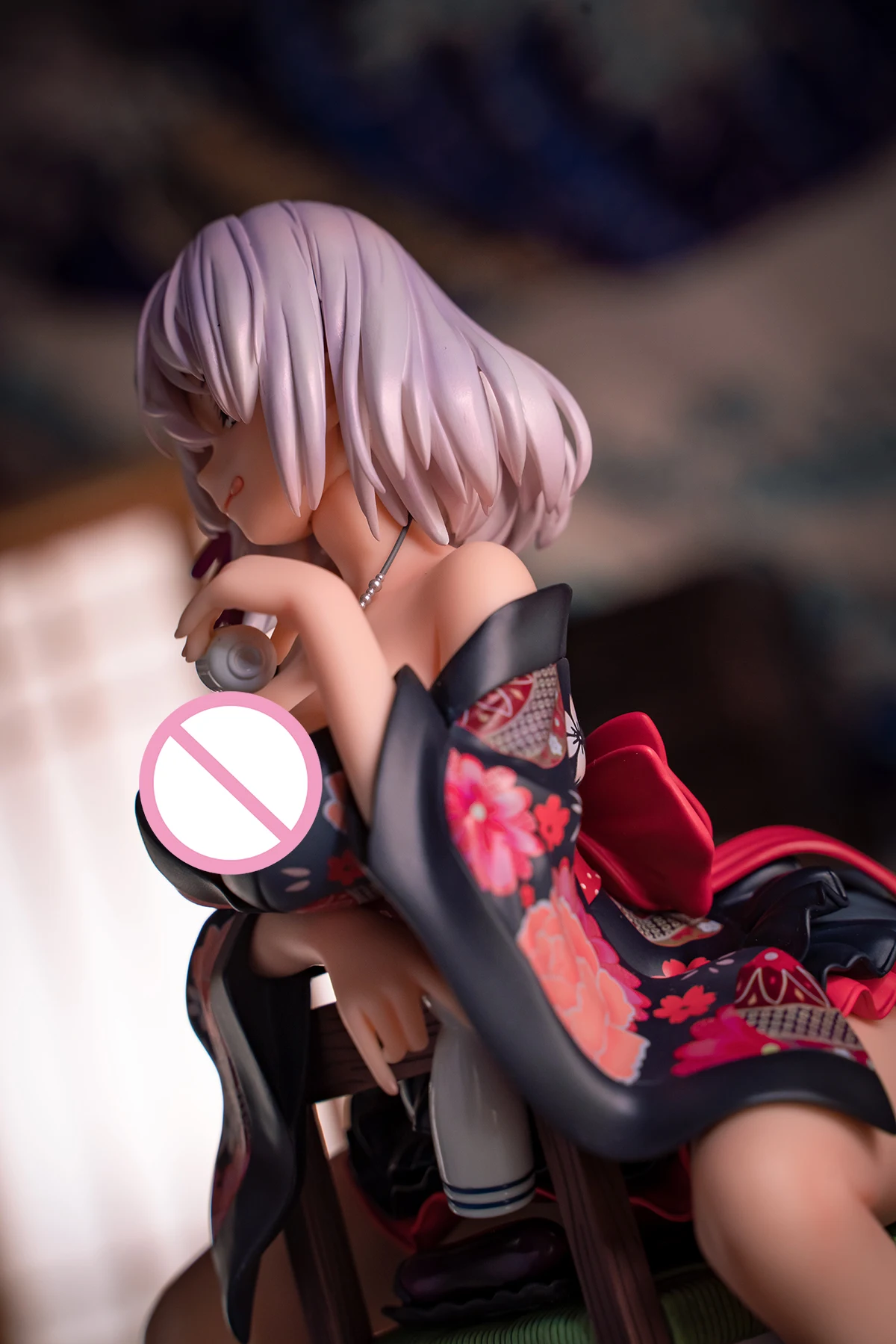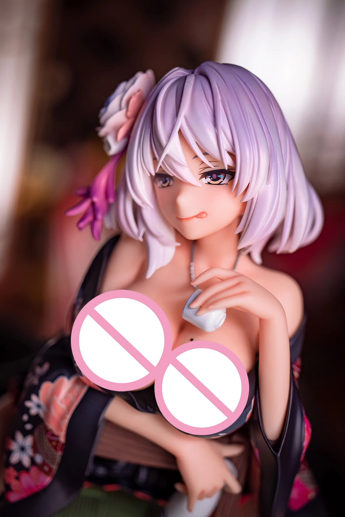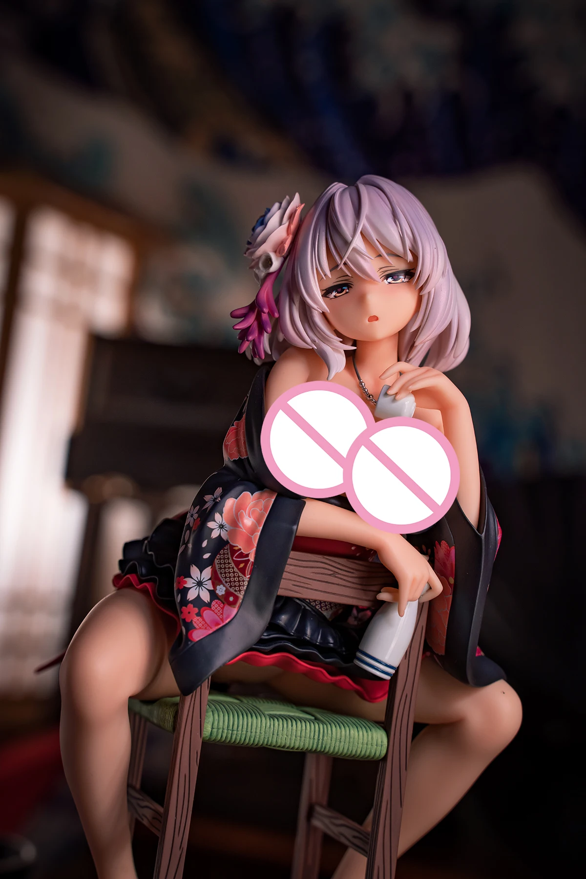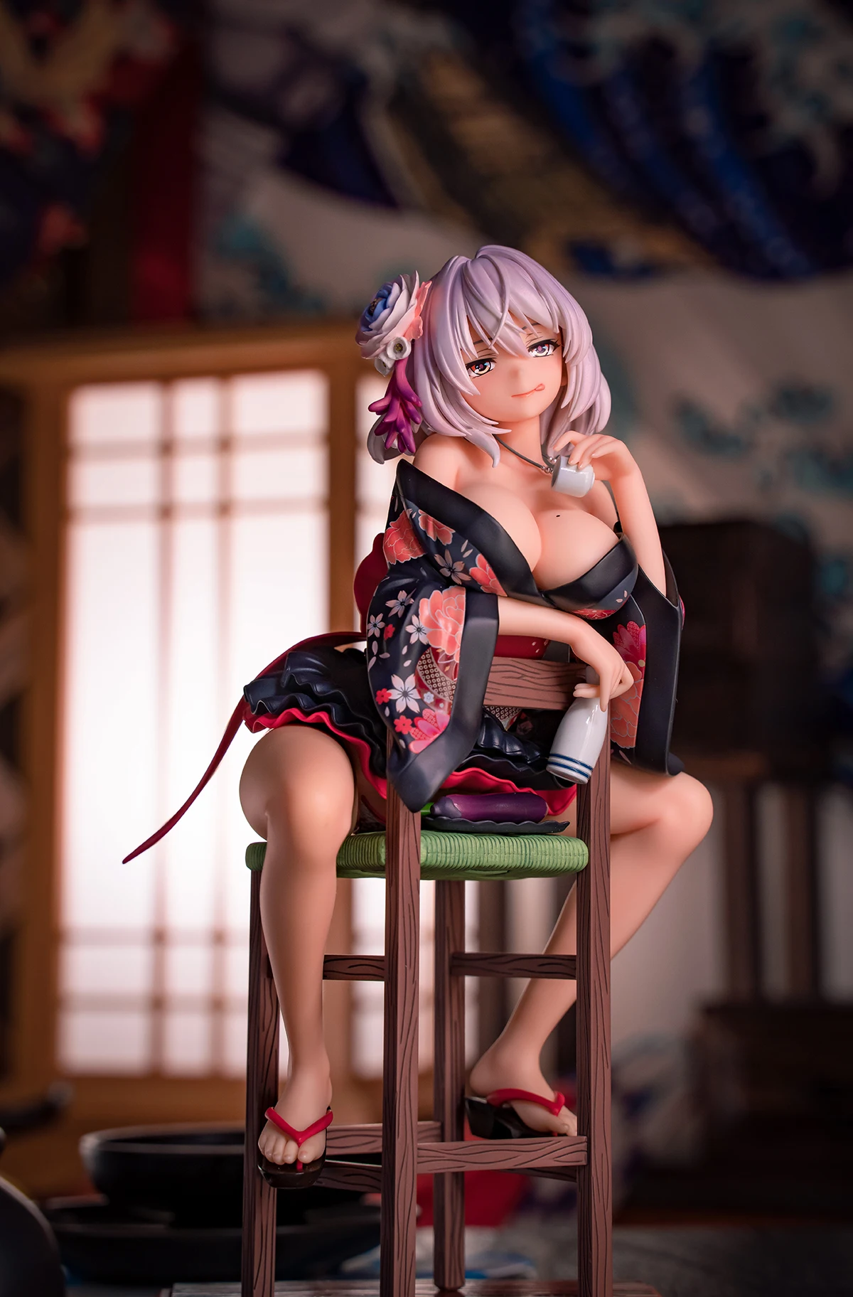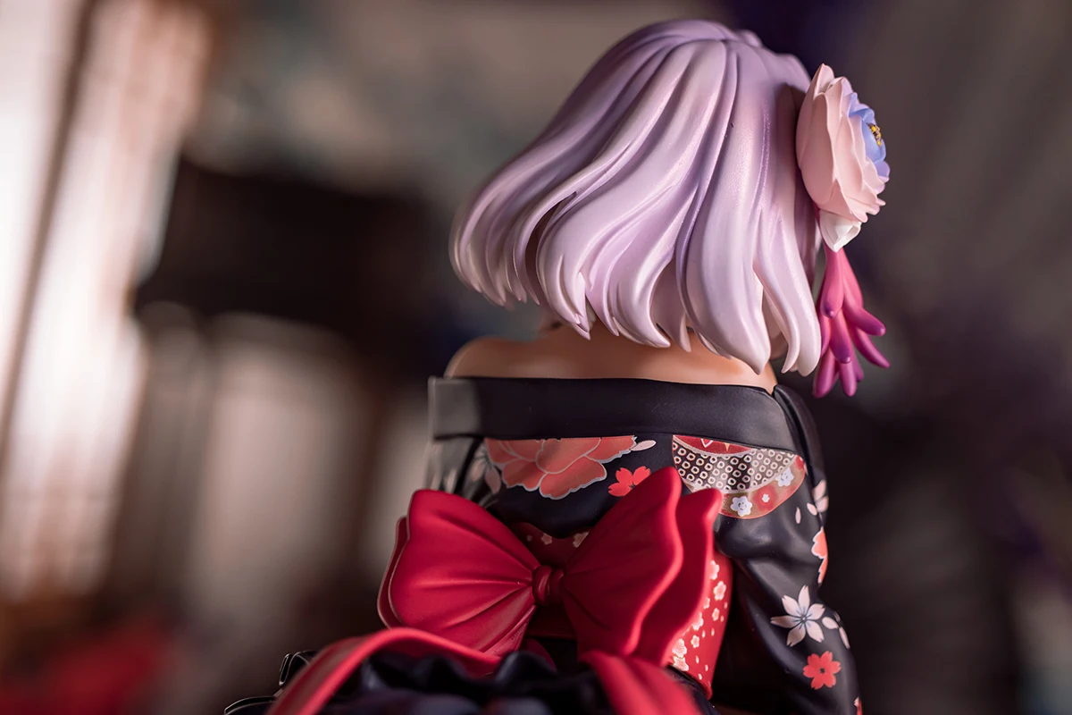 Her delicate hair accessories and the deluxe pattern on the kimono are finely sculpted.