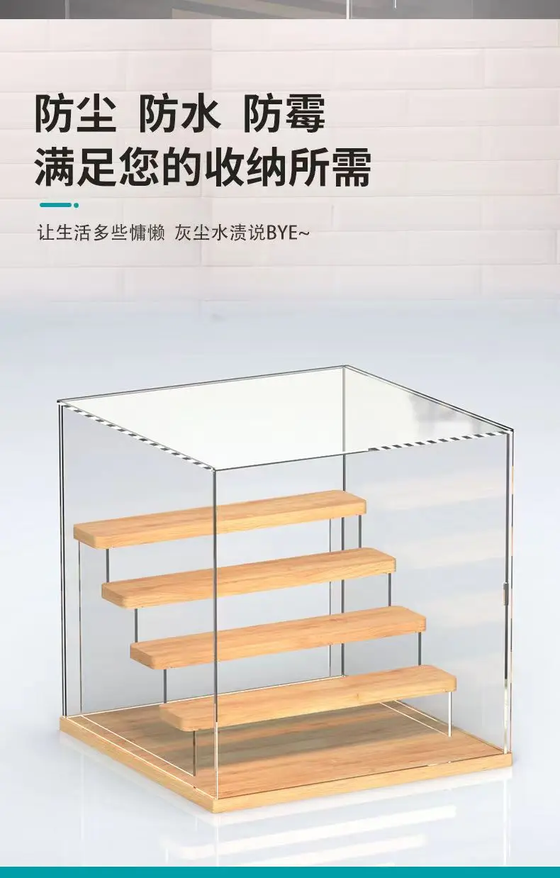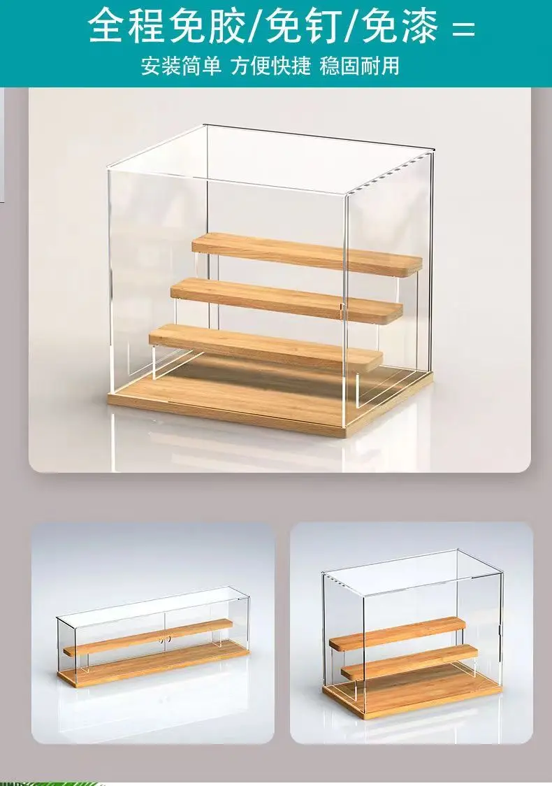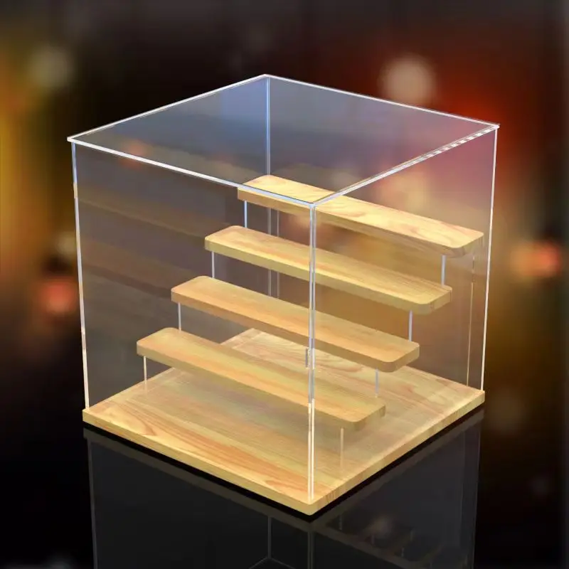Solid Wood Step Figure Display Cabinet Transparent Acrylic Display Box For Toys, Car Models, Action Figures Storage And Display
