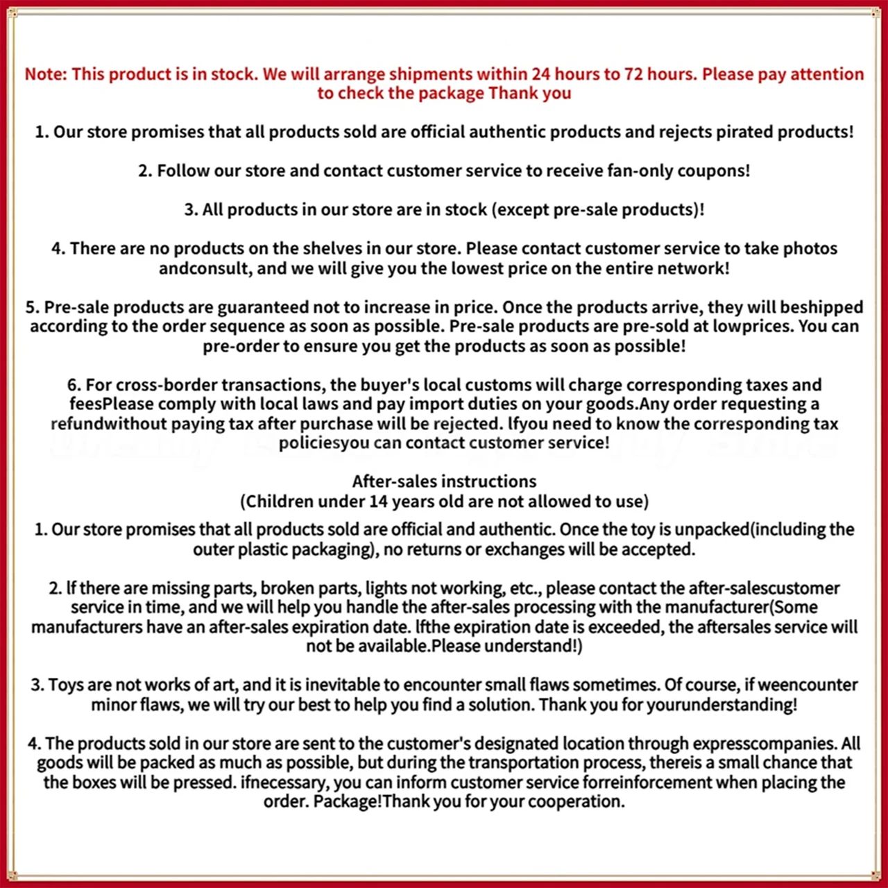 âThe box may be slightly squeezed and deformed and other defects due to the material, and the bumping during transport. We will pack the goods as carefully as possible to protect the goods.
