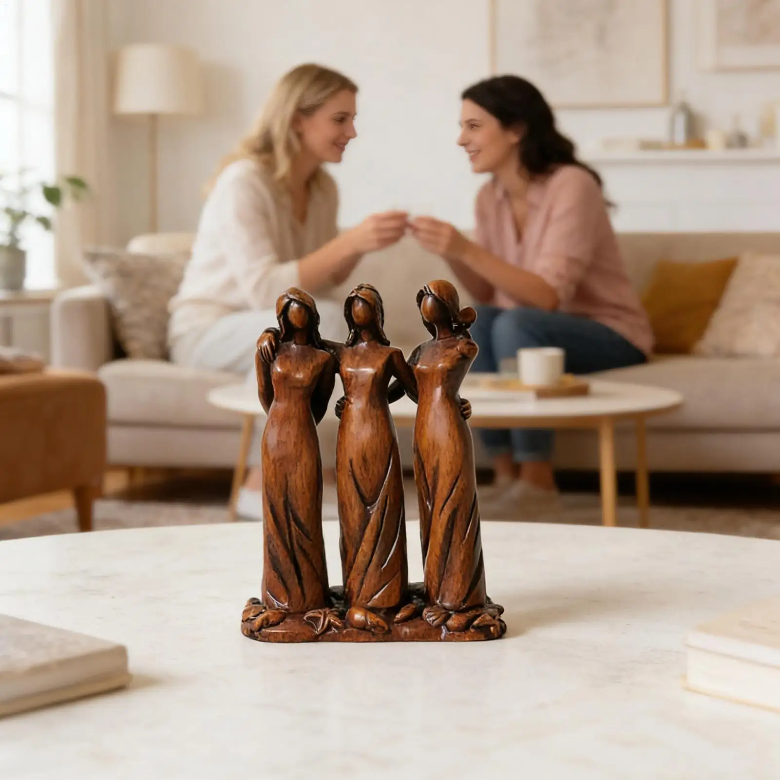 5.Heartwarming Keepsake: Designed to celebrate the special bond shared by sisters and female friends, this sculpture embodies warmth and affection, creating a lasting memento that complements home decor while honoring deep familial connections
