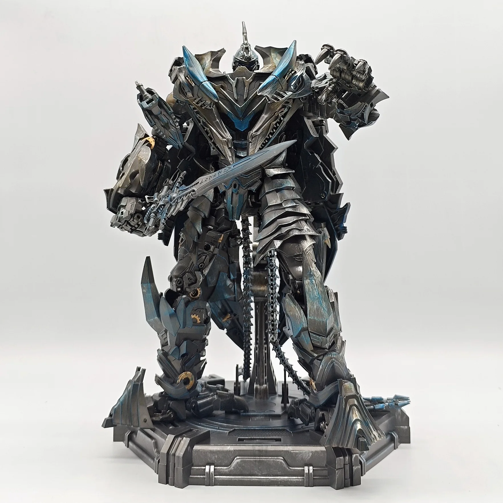Product features: It can restore classic scenes of movie dinosaurs, and can be matched with a hundred micro steel cable ratio. It can be paired with various ratios such as small hand, SS, etc. to restore and match combat scenes with Bumblebee. The configuration includes a platform, frost sword, and tail steel whip that can be changed into two handed weapons.