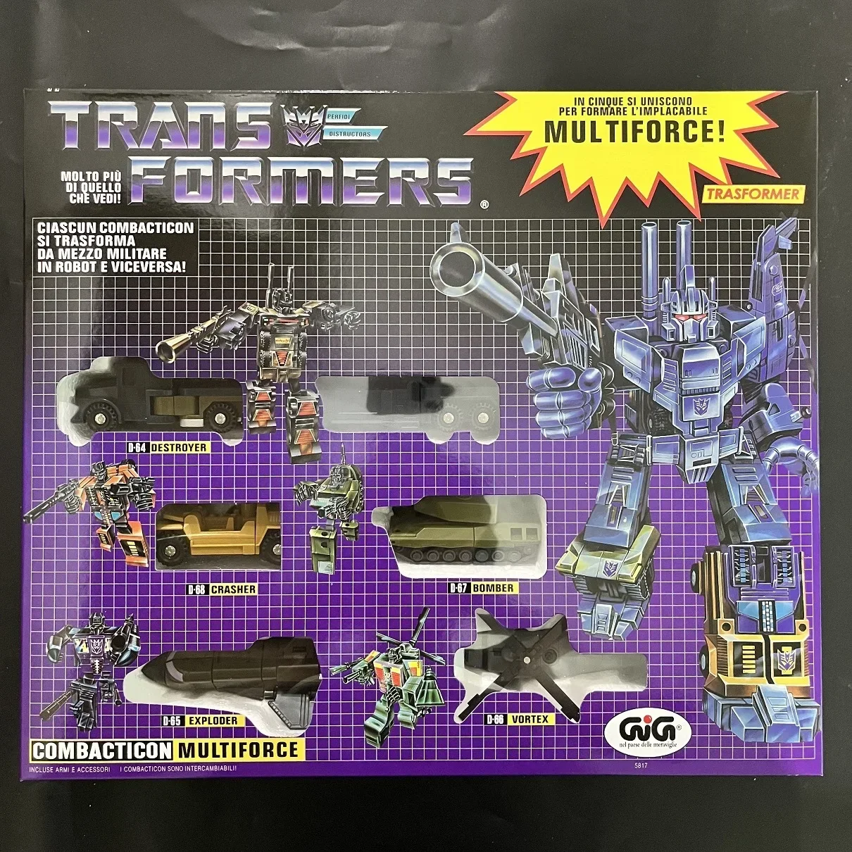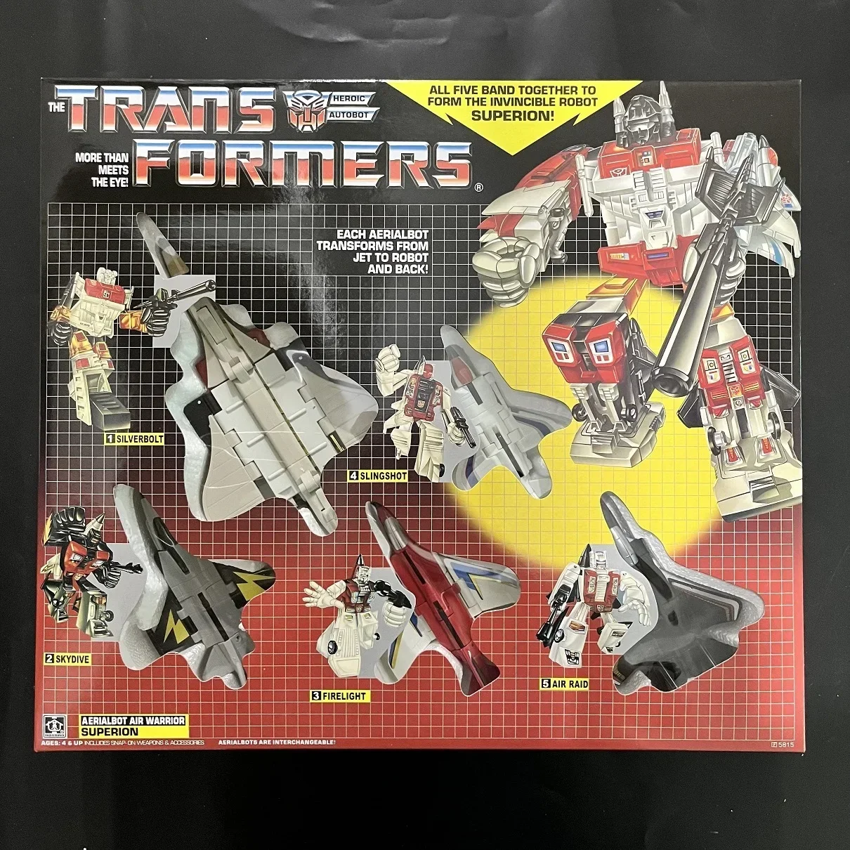 Superion, Cosmos, Multiforce, Computron, Warpath, Menasor, Powerglide, Soundwave, Swoop, Metroplex, OP prime, Grimlock, Snarl, Sludge, Slag, Hound, Mirage, Seaspray, Shockwave, Wheeljack, Sunstreaker, Slamdance, Huffer, Tailgate, Blitzwing, shrapnel, Reflector, Rewind and Steeljaw, Pipes, Ramhorn and Eject, Laserbeak and Frenzy, Ratbat and Frenzy, bombshell, kickback, Ravage and Rumble, Gears, Brawn, Beachcomber, Devastator, Defensor